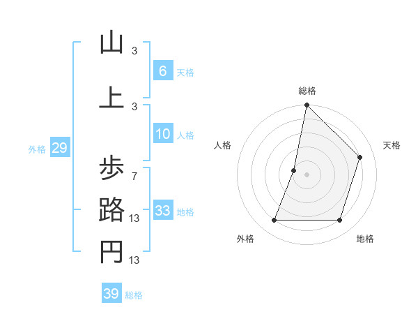 山上 歩路円さんを姓名の画数から五運を鑑定