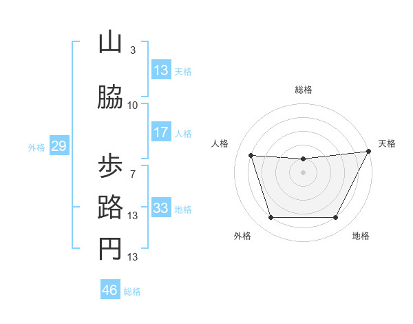 山脇 歩路円さんを姓名の画数から五運を鑑定