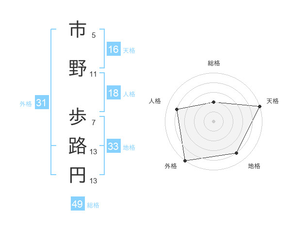 市野 歩路円さんを姓名の画数から五運を鑑定