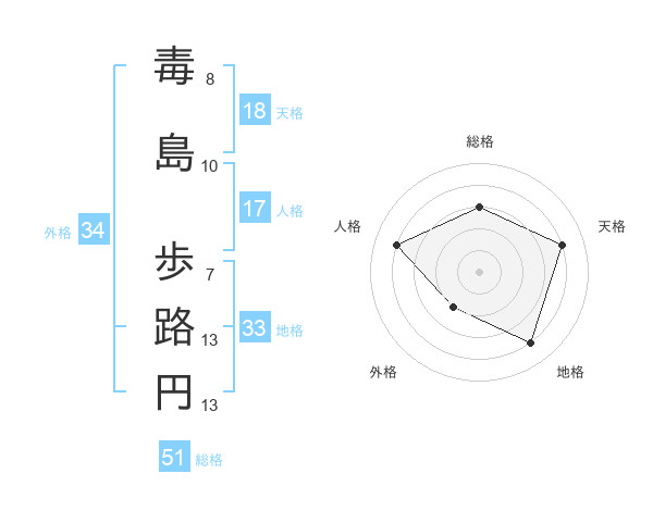 毒島 歩路円さんを姓名の画数から五運を鑑定