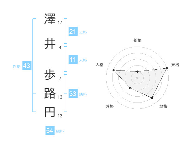 澤井 歩路円さんを姓名の画数から五運を鑑定
