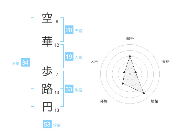 空華 歩路円さんの総格は53画の3点!