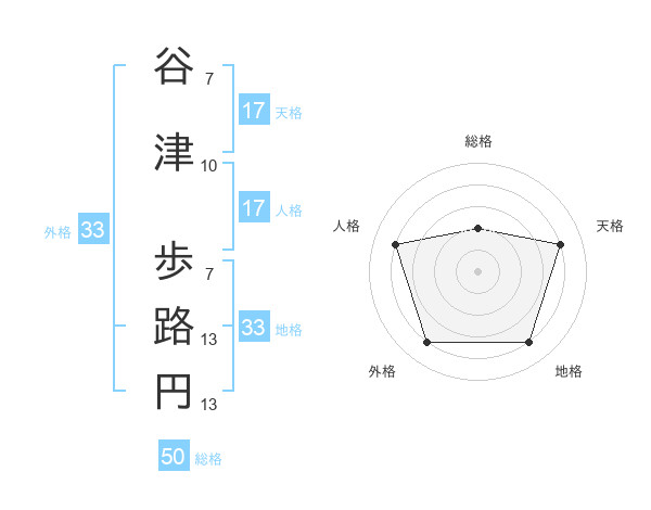 谷津 歩路円さんの総格は50画の2点!