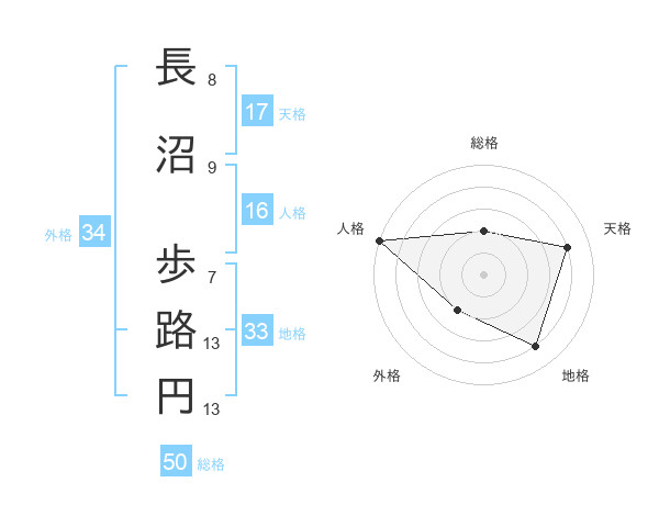 長沼 歩路円さんの総格は50画の2点!