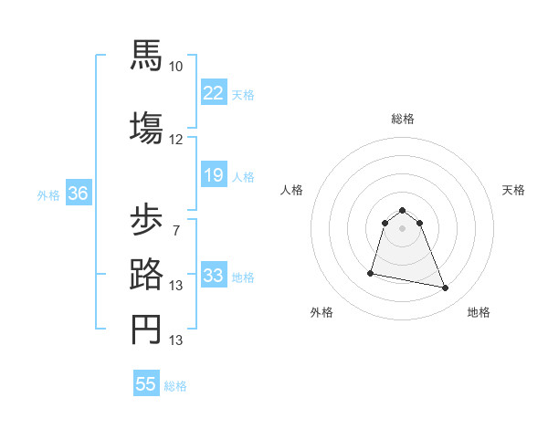 馬塲 歩路円さんを姓名の画数から五運を鑑定