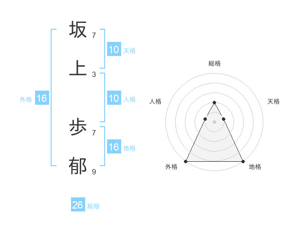 坂上 歩郁さんを姓名の画数から五運を鑑定