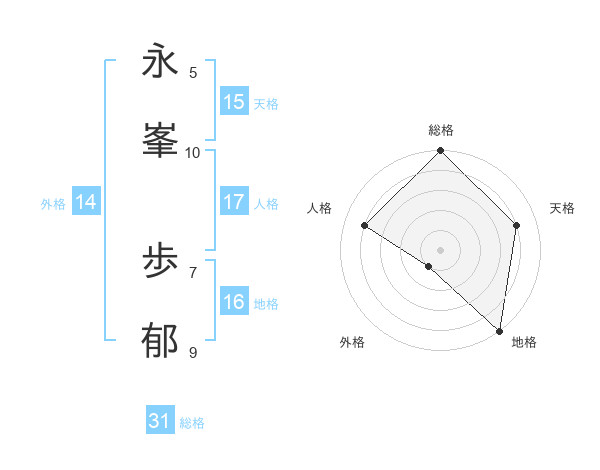 永峯 歩郁さんを姓名の画数から五運を鑑定