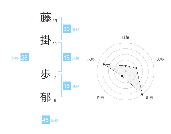 藤掛 歩郁さんの天格は30画の2点!