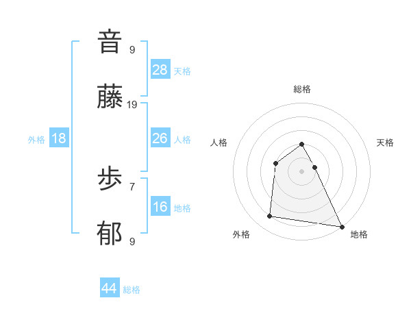 音藤 歩郁さんを姓名の画数から五運を鑑定