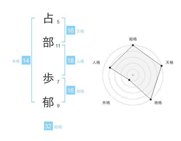 占部 歩郁さんを姓名の画数から五運を鑑定