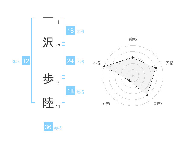 一沢 歩陸さんを姓名の画数から五運を鑑定