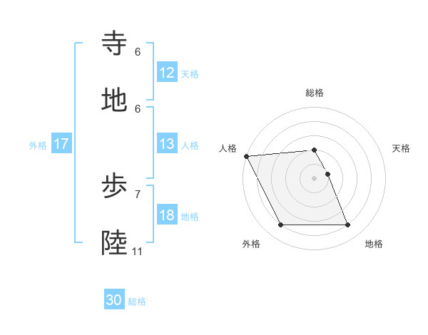 寺地 歩陸さんの天格は12画の1点!