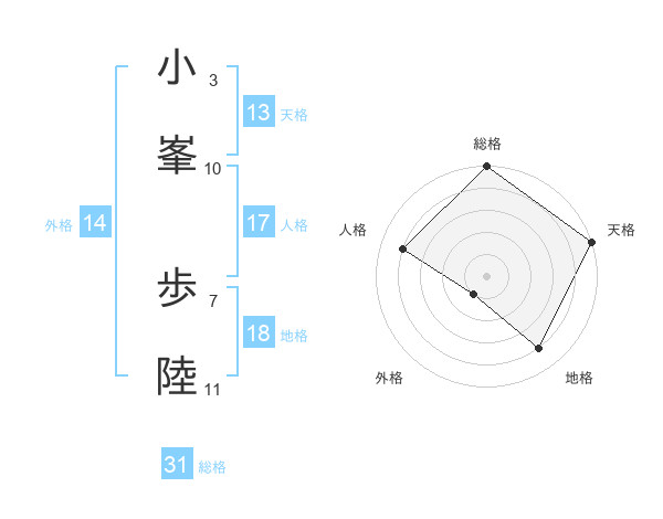 小峯 歩陸さんの総格は31画の5点!