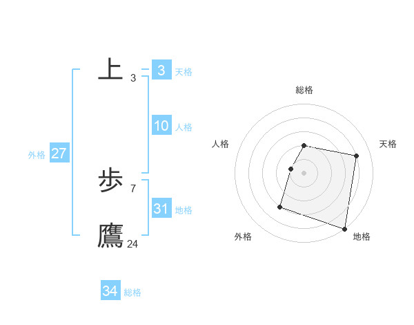 上 歩鷹さんの総格は34画の2点!