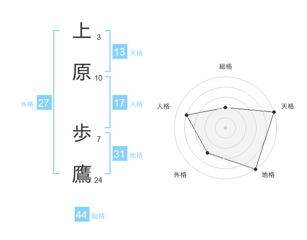上原 歩鷹さんを姓名の画数から五運を鑑定