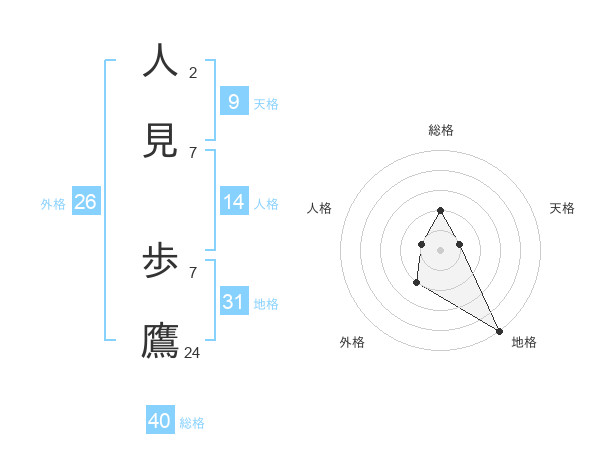 人見 歩鷹さんの総格は40画の2点!