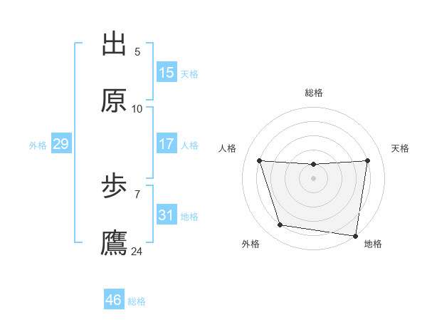 出原 歩鷹さんを姓名の画数から五運を鑑定