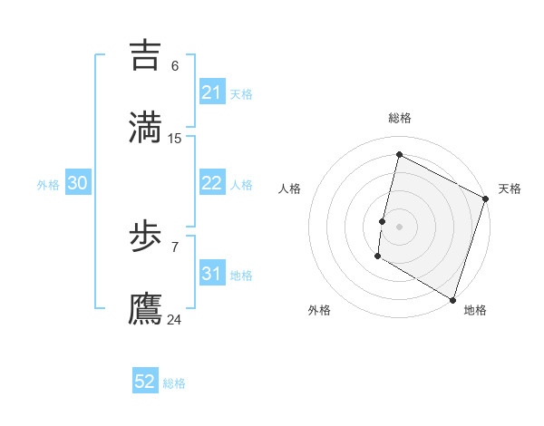 吉満 歩鷹さんを姓名の画数から五運を鑑定