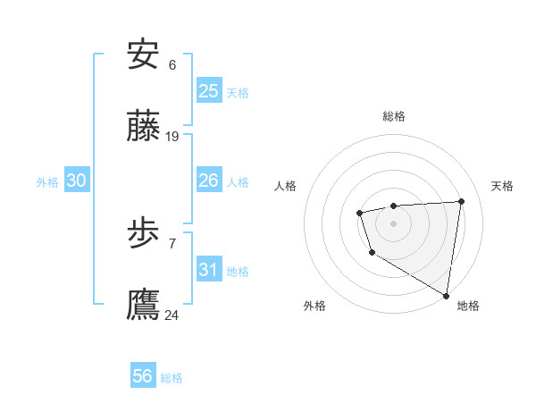 安藤 歩鷹さんの総格は56画の1点!