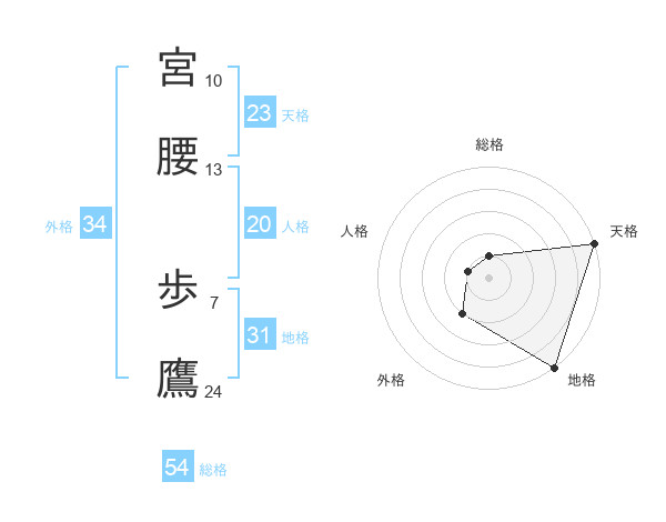 宮腰 歩鷹さんを姓名の画数から五運を鑑定