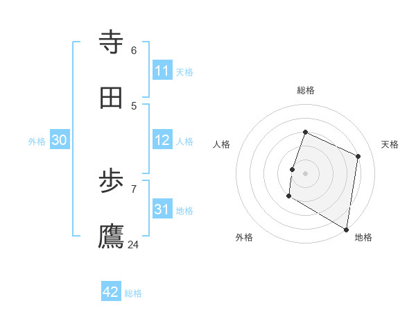 寺田 歩鷹さんの天格は11画の4点!