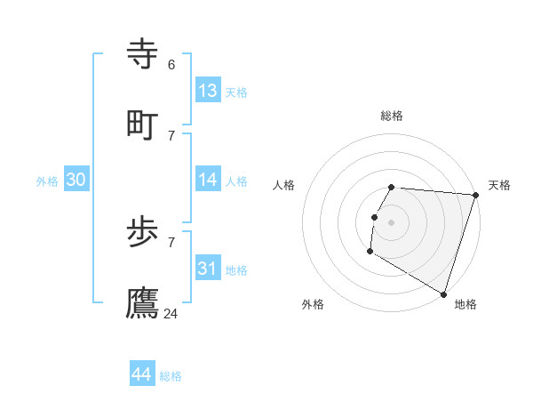 寺町 歩鷹さんの地格は31画の5点!