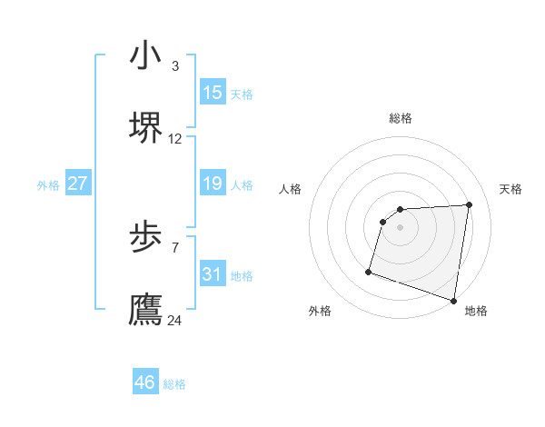 小堺 歩鷹さんの地格は31画の5点!