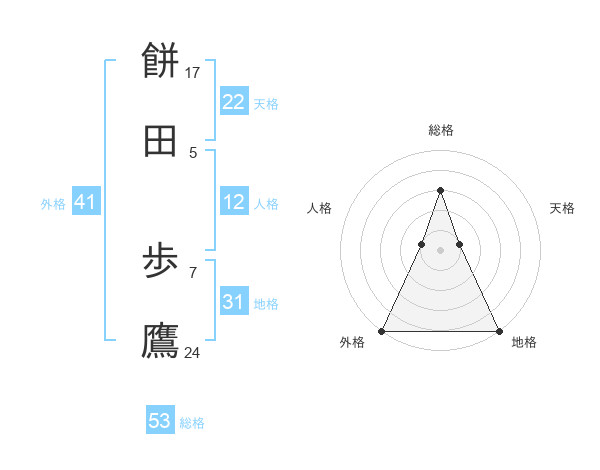 餅田 歩鷹さんの外格は41画の5点!