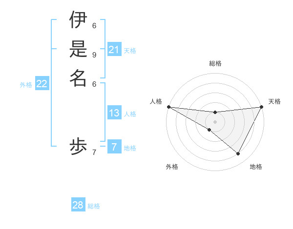 伊是名 歩さんを姓名の画数から五運を鑑定