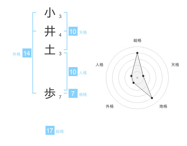 小井土 歩さんの総格は17画の4点!