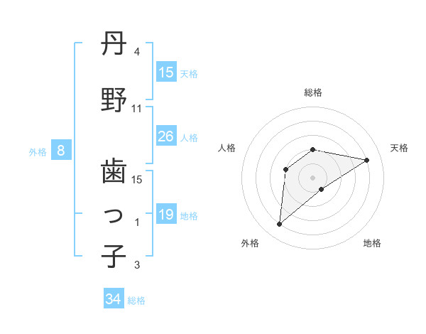 丹野 歯っ子さんを姓名の画数から五運を鑑定