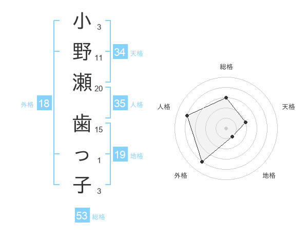 小野瀬 歯っ子さんを姓名の画数から五運を鑑定