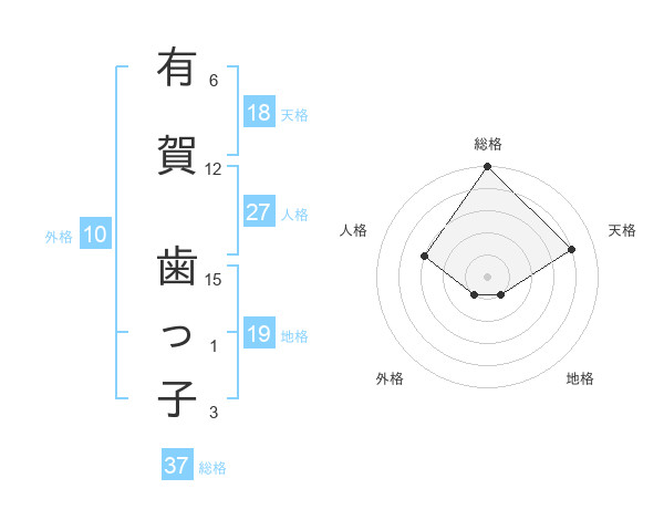 有賀 歯っ子さんを姓名の画数から五運を鑑定