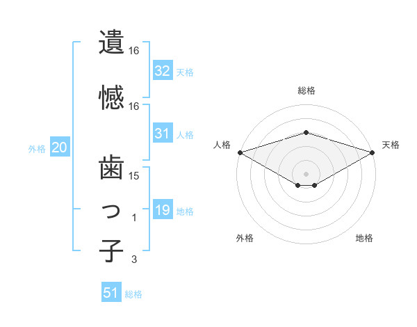 遺憾 歯っ子さんを姓名の画数から五運を鑑定