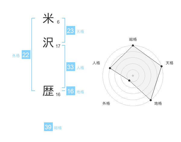 米沢 歴さんの天格は23画の5点!