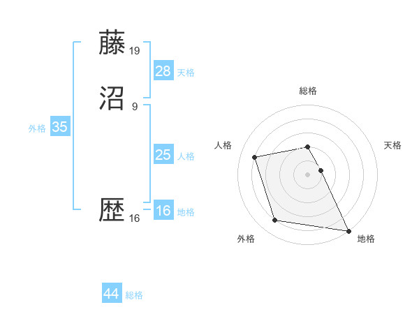 藤沼 歴さんの外格は35画の4点!