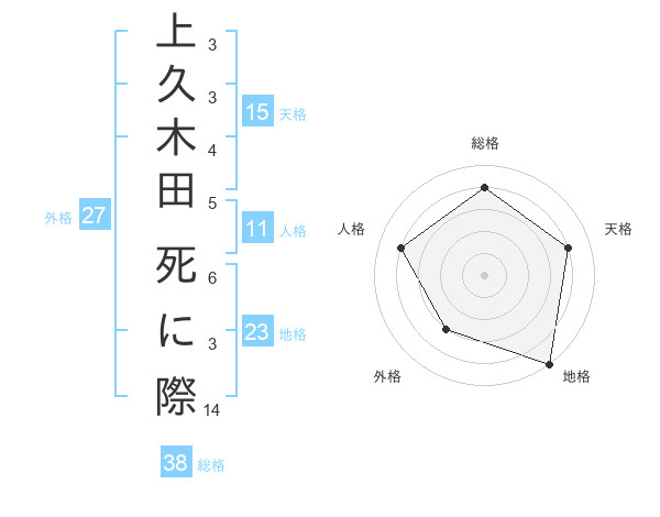 上久木田 死に際さんの総格は38画の4点!