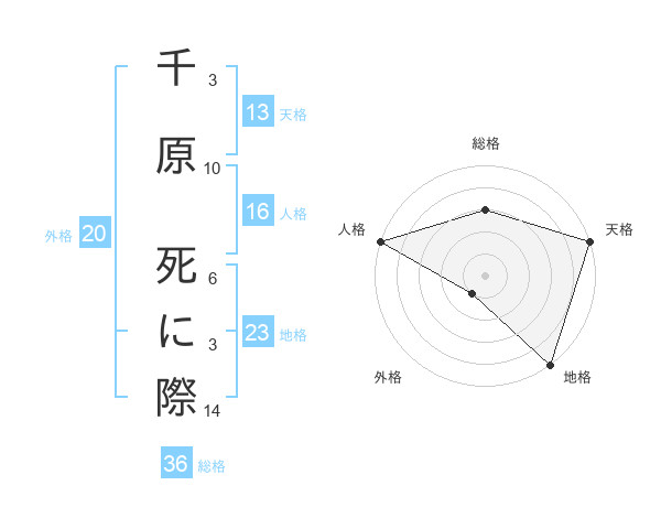 千原 死に際さんの地格は23画の5点!
