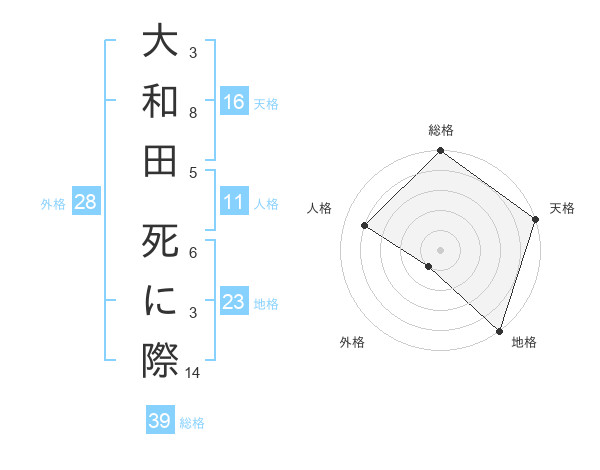 大和田 死に際さんの総格は39画の5点!