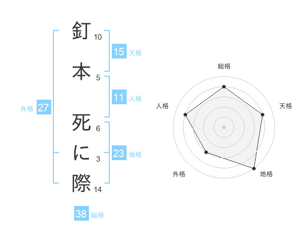 釘本 死に際さんの総格は38画の4点!