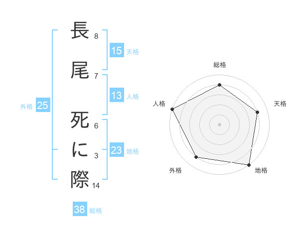 長尾 死に際さんを姓名の画数から五運を鑑定