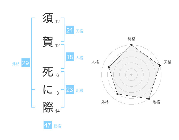 須賀 死に際さんを姓名の画数から五運を鑑定