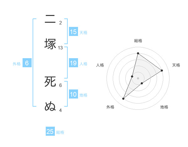 二塚 死ぬさんを姓名の画数から五運を鑑定
