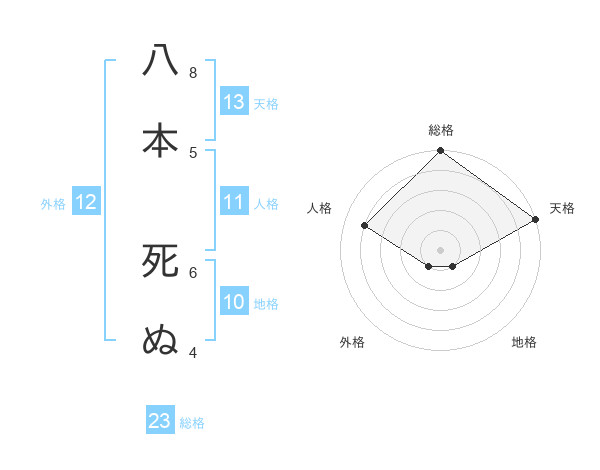 八本 死ぬさんの天格は13画の5点!