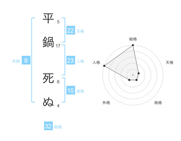 平鍋 死ぬさんの人格は23画の5点!