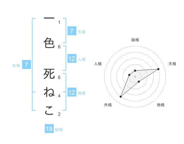一色 死ねこさんを姓名の画数から五運を鑑定
