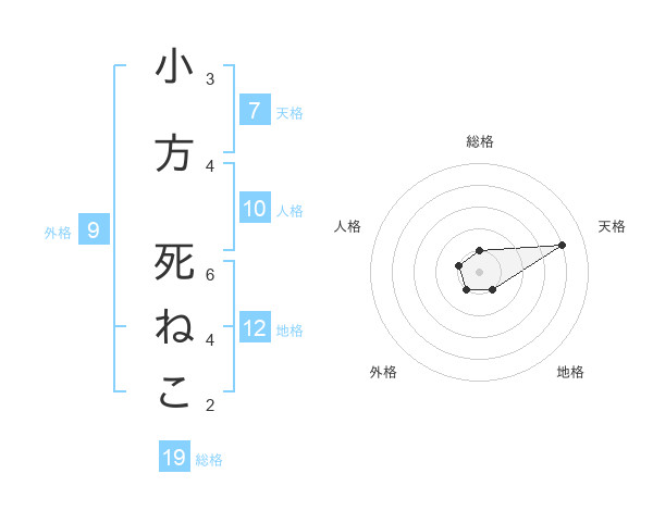 小方 死ねこさんを姓名の画数から五運を鑑定