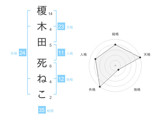榎木田 死ねこさんを姓名の画数から五運を鑑定