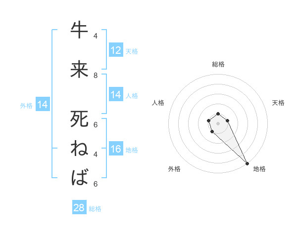 牛来 死ねばさんを姓名の画数から五運を鑑定