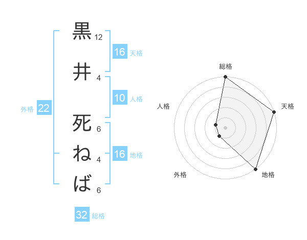 黒井 死ねばさんを姓名の画数から五運を鑑定